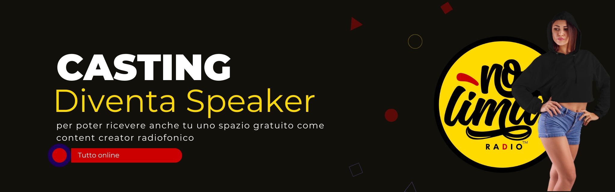 No Limits Radio è una piattaforma tecnica di diffusione gratuita. I contenuti trasmessi sono di esclusiva responsabilità dei rispettivi autori. Per segnalazioni utilizzare il presente modulo
